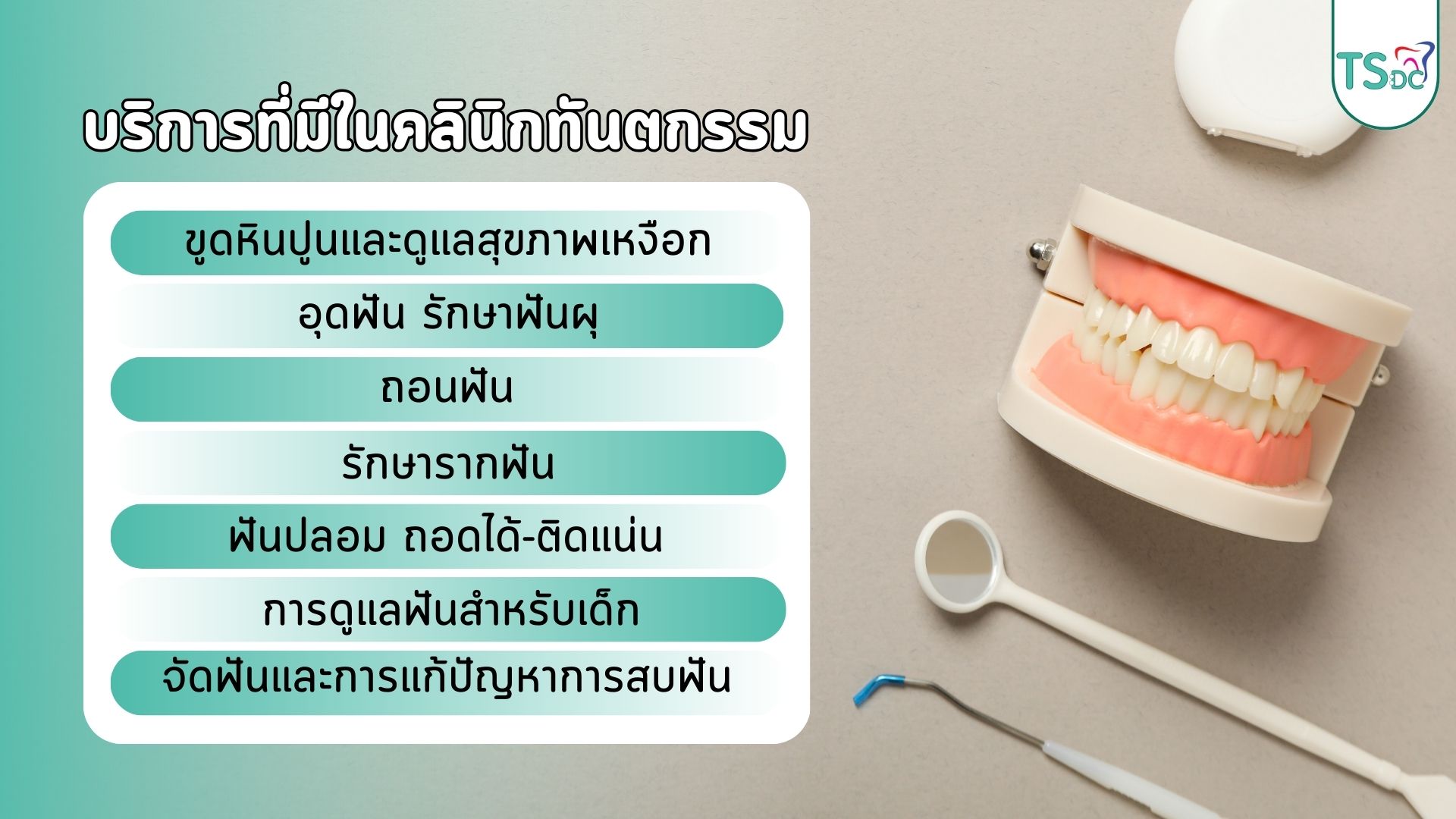 คลินิกทันตกรรมส่วนใหญ่มีบริการที่หลากหลายและครอบคลุมทุกช่วงวัย ดังนี้: