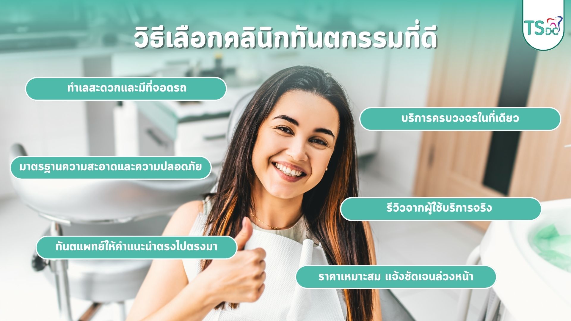 การเลือกคลินิกทันตกรรมควรพิจารณามาตรฐานต่าง ๆ ได้แก่: