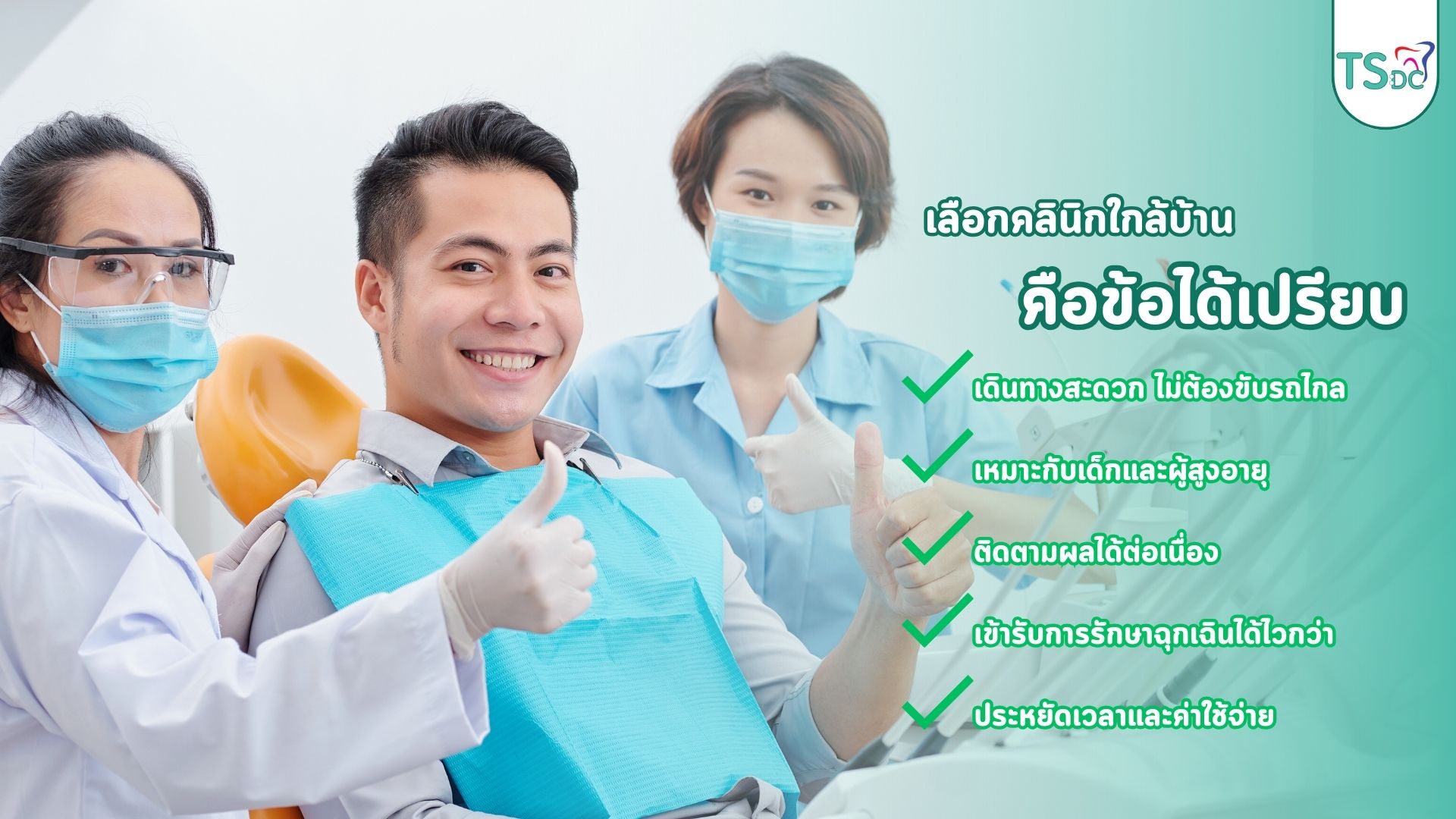 - เหมาะกับเด็กและผู้สูงอายุ: การพาเด็กหรือผู้สูงอายุเดินทางไกลอาจทำให้ลำบาก การมีคลินิกในละแวกบ้านช่วยลดความกังวลและทำให้เกิดวินัยในการไปตรวจฟันได้ง่ายขึ้น